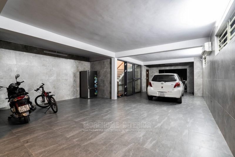 Tầng hầm được phân khu dành diện tích cho để xe và một phần nhỏ để được tủ lạnh lớn trong nhà
